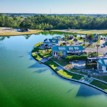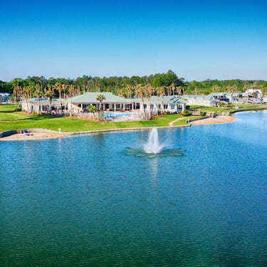 Nestled in the scenic Gulf Shores/Orange Beach area, Lake Osprey RV Resort offers a luxurious retreat with 193 full hook-up RV sites. This premier destination combines serene lakeside and nature preserve views with top-tier amenities, perfect for relaxation and adventure. Guests can unwind at the stunning clubhouse, join weekly activities, or take a dip in the 55,000-gallon heated pool. The resort also features private lake fishing, a 1,000 sq. ft. fitness center, pickleball courts, and a putting green, blending country charm with modern comforts.
