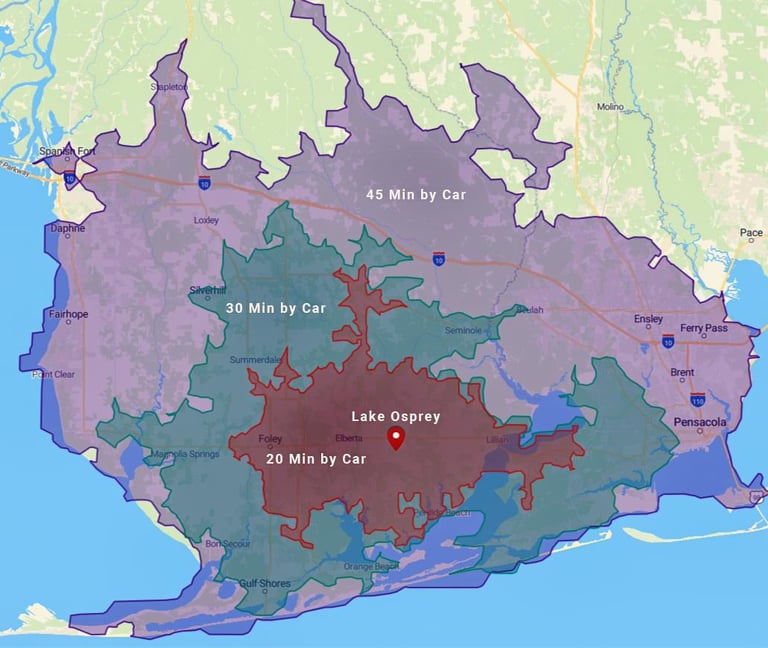Adventure Awaits at Lake Osprey RV Resort! Thrill out at OWA Water Park (15 min), cheer at Foley Sports Tourism Complex (15 min), or roam with animals at Alabama Gulf Coast Zoo (30 min). Bask in the sun or surf fish at Gulf Shores Public Beach (31 min). Crave seafood? Dive into Doc’s Seafood Shack (16–30 min) or Tin Top Restaurant & Oyster Bar (28 min). From quirky Bamahenge (9 min) to coastal fun, excitement is minutes away! Check the full list below!