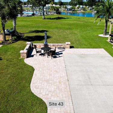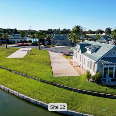 Experience personalized RV sites at Lake Osprey RV Resort, the premier destination on the Gulf Coast. Each rental site features a spacious 16x75 ft RV pad with full hookups, accommodating a 45 ft motorcoach and parking for two vehicles. With an average site size exceeding 5,200 sq ft, most lots can support a 1,200 sq ft home for future development. Come for A Visit and Discover Your Forever Home -- And Build Your Dream Retreat. Of the 193 total sites, approximately 65 are occupied by homes, leaving 50 to 65 sites typically available for rent during the prime season. All owners may rent out their sites, though county tax rates (residential vs. commercial) and insurance costs often make sites with homes less practical for rentals. Per community standards, short-term home rentals like VRBO are not permitted, but all outdoor site amenities are included for renters when renting a site with a home.